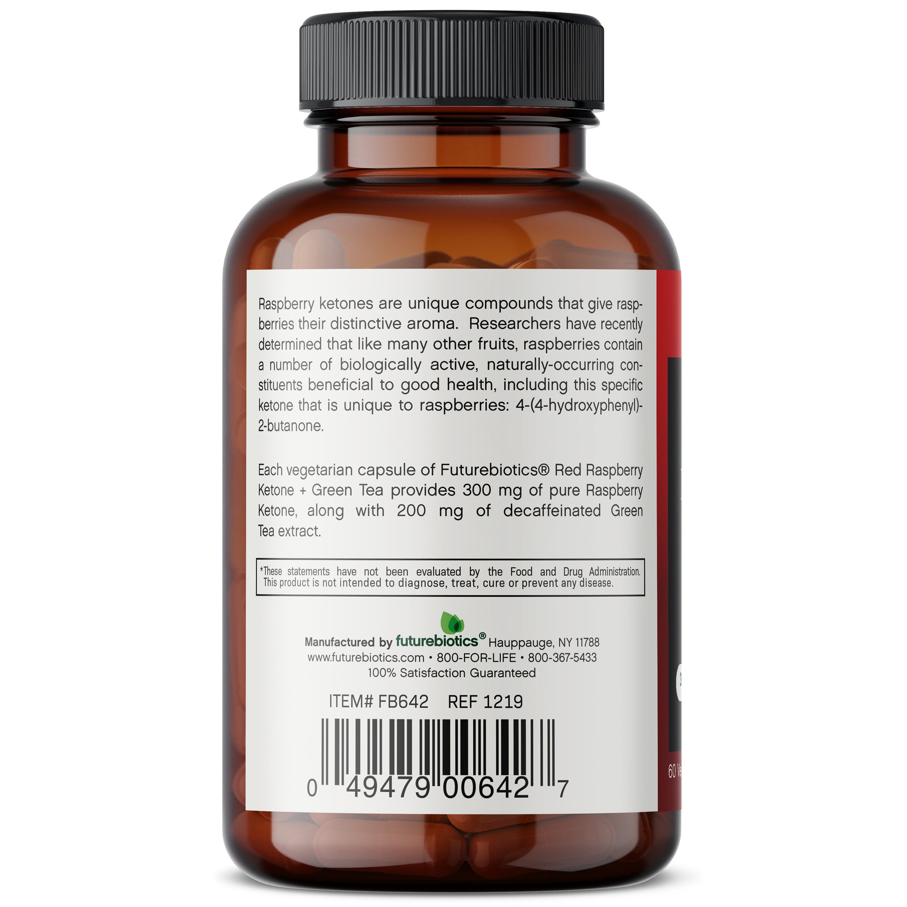 Raspberries, like most berries, are a nutrient-dense superfood, packed with essential vitamins and minerals. Futurebiotics Red Raspberry Ketone supplement uses the benefits of raspberries to support healthy weight management.* Raspberry Ketones help support the breakdown of fat cells more effectively, aiding the body with weight management.*  Our supplement also contains green tea extract, which has long been used for its beneficial antioxidants.* Each capsule provides a full 300mg of pure Ketone specific to raspberries, as well as 200mg of decaffeinated Green Tea extract so you get the benefits without the jitters. Simply take one capsule daily with breakfast or lunch.