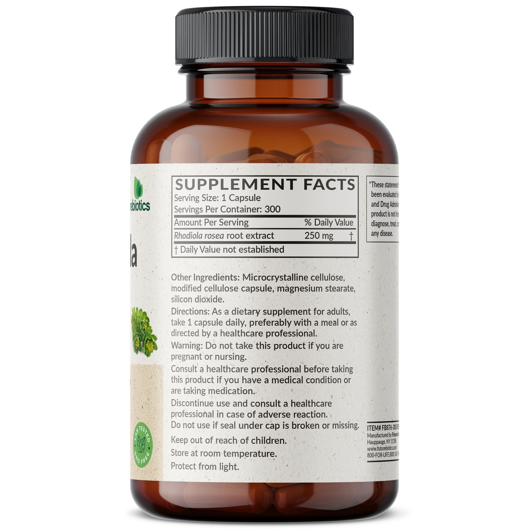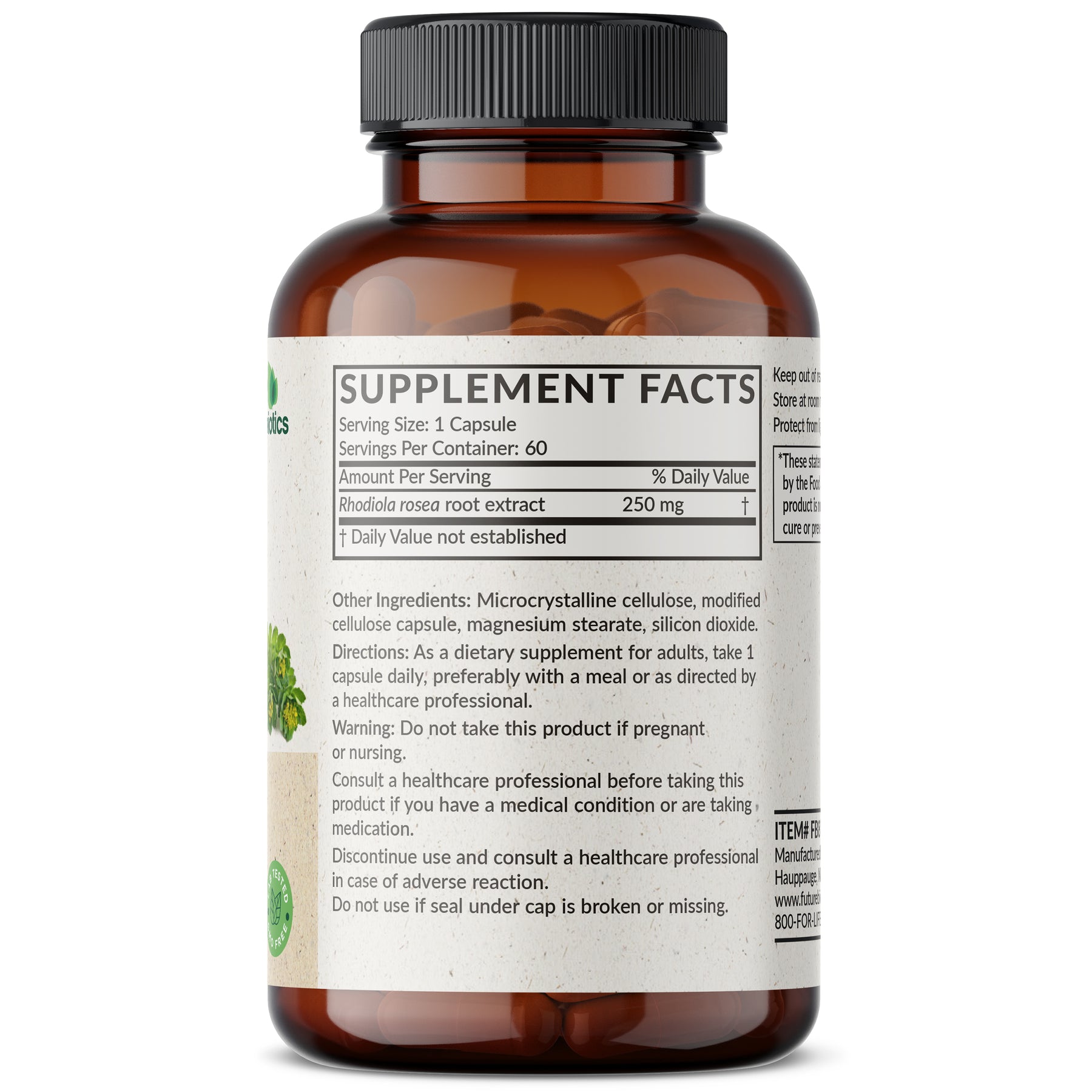 Futurebiotics Rhodiola Rosea provides 1000 MG (from 4:1 extract) of Rhodiola per vegetarian capsule. Rhodiola Rosea is considered an Adaptogenic Herb, as it has been said to help the body cope and adapt.* Rhodiola Rosea helps to support healthy brain function, stamina and overall wellness in active adults.* Free of GMOs, Gluten and Soy, Futurebiotics Rhodiola Rosea 1000 MG is carefully manufactured by trained professionals in our state-in-the-art facility that is located in Hauppauge, New York. Rhodiola Rosea 1000 MG is Vegan/Vegetarian friendly and contains no ingredients derived from animals.