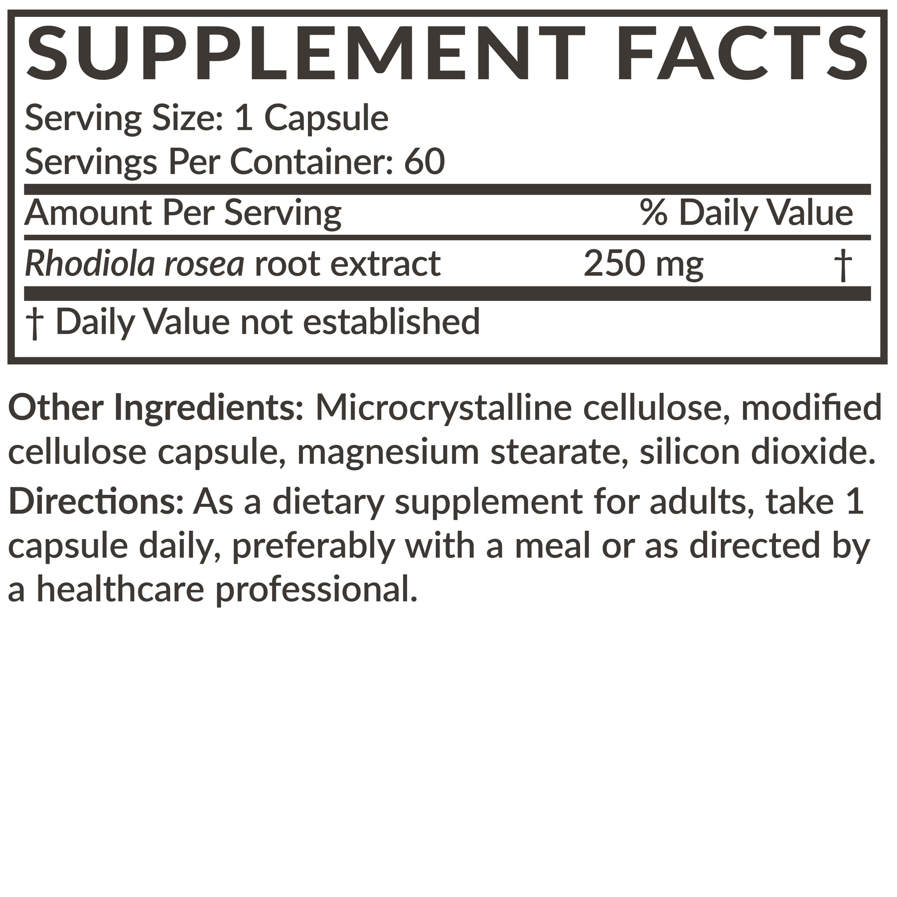 • Providing 1000 MG (from 4:1 extract) of Rhodiola per capsule